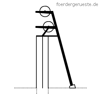 Information zu den Darstellungen: Die Seilscheiben der Abbildungen werden immer ohne Seilauflage dargestellt. Die Förderseile, unter Ausnahme der Turmförder- und Doppelstrebengerüste sowie des Göpels, werden immer von "Rechts" aufgelegt. Eine Unterscheidung zwischen Trommel- oder Koepeförderung wird hier nicht getroffen. Auch wird der geläufige Begriff "Vollstrebengerüst" hier nicht gebraucht, da dieser ein Fördergerüst nur unzulänglich zu bezeichnen vermag.