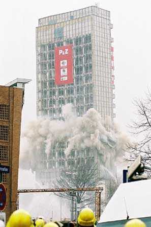 Hochhaussprengung in Düsseldorf