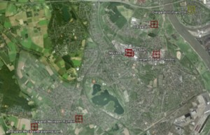 östliche Teil des Grubenfeldes mit den 3 Schächten der Schachtanlage Diergardt wurde 1967 stillgelegt und abgeworfen.
