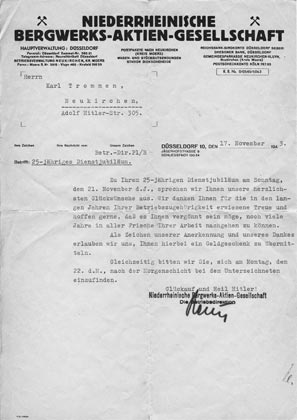 Anschreiben zum 25. Dienst- jubiläum meines Großvaters am 21.9.1943 (groß)
