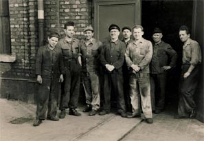 | Jubiläum in der Betriebswerkstatt (mein Großvater Carl Trommen ganz links) |